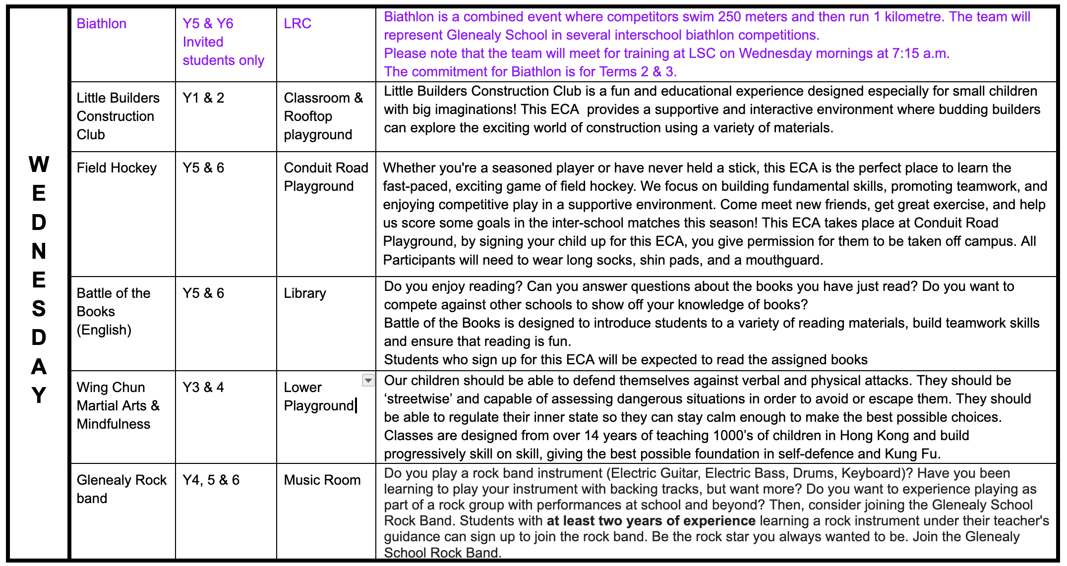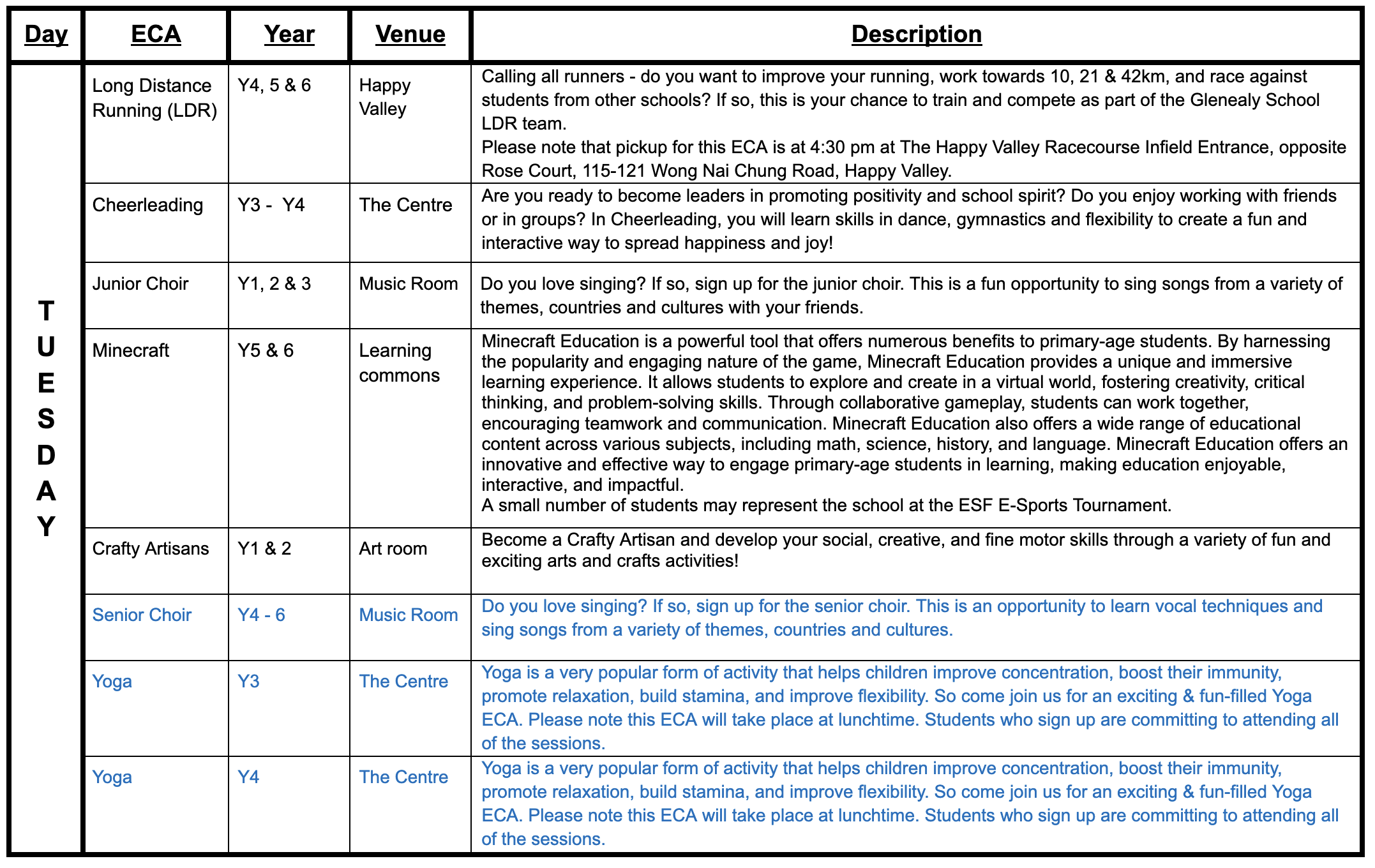 For any ECA questions or enquiries please contact eca@glenealy.edu.hk